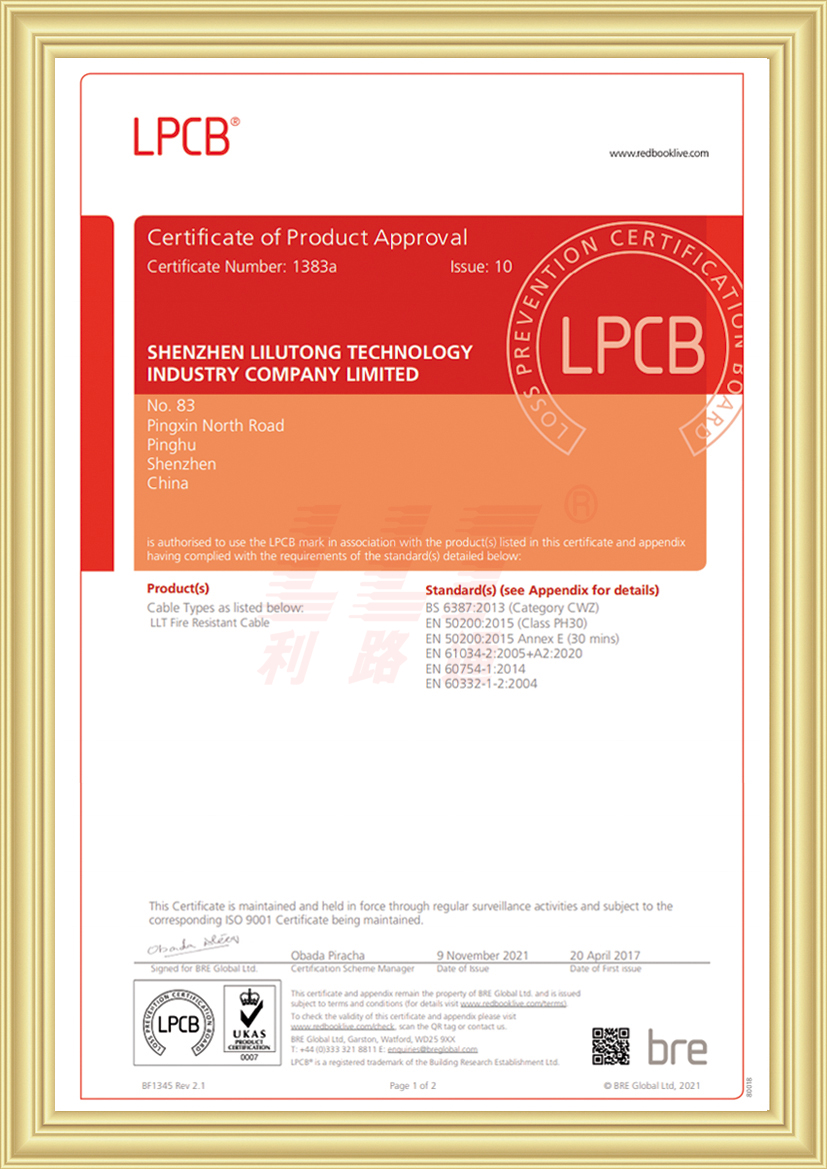 ●耐火阻燃等級(jí)符合BS6387-2013標(biāo)準(zhǔn)